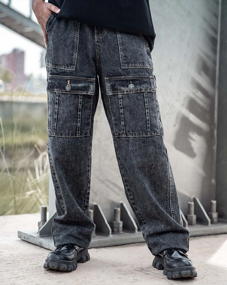 Gun Metal Cargo Baggy Jeans